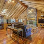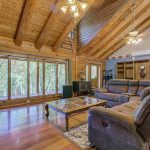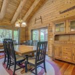 As soon as you step inside, you’ll be mesmerized by the soaring cathedral ceilings that brighten the space and create a feeling of openness and joy. Sunlight pours in from large windows, casting a warm glow on the rich wooden accents of this log-style masterpiece and massive rock fireplace. Every corner invites you to relax and unwind.
